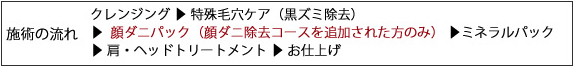 自分ではどうにも出来ない頑固な毛穴の黒ズミ、開いてしまった毛穴を改善するコースです。 |